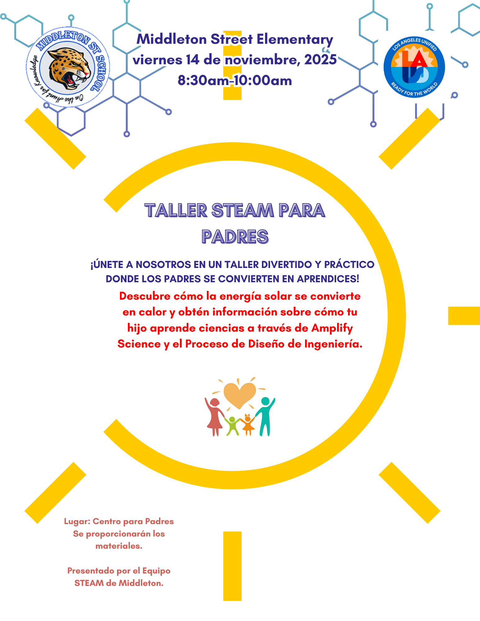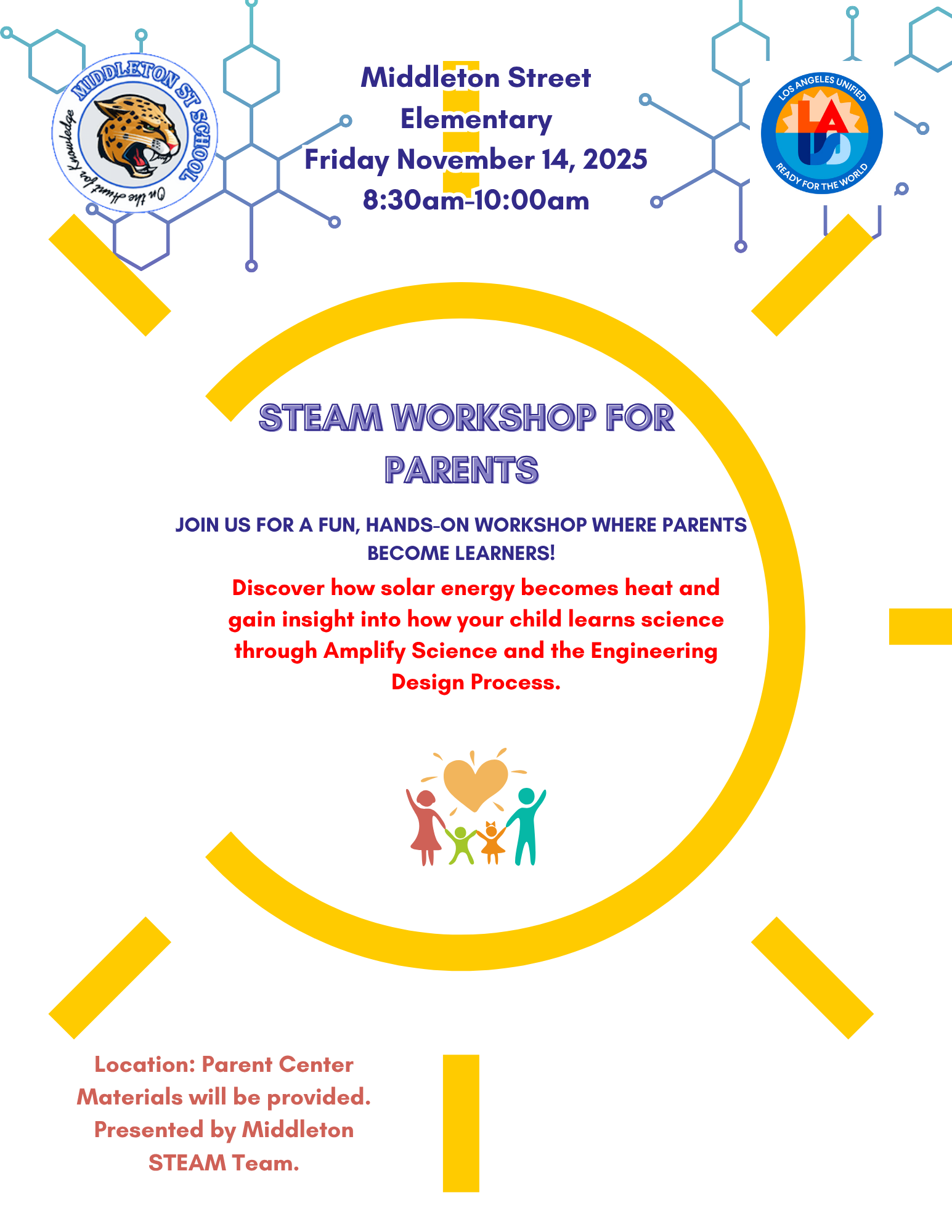 Calling all Middleton parents! Join us for a fun and hands-on STEAM Workshop where parents become learners too! Discover how solar energy turns into heat and explore how your child learns science through Amplify
