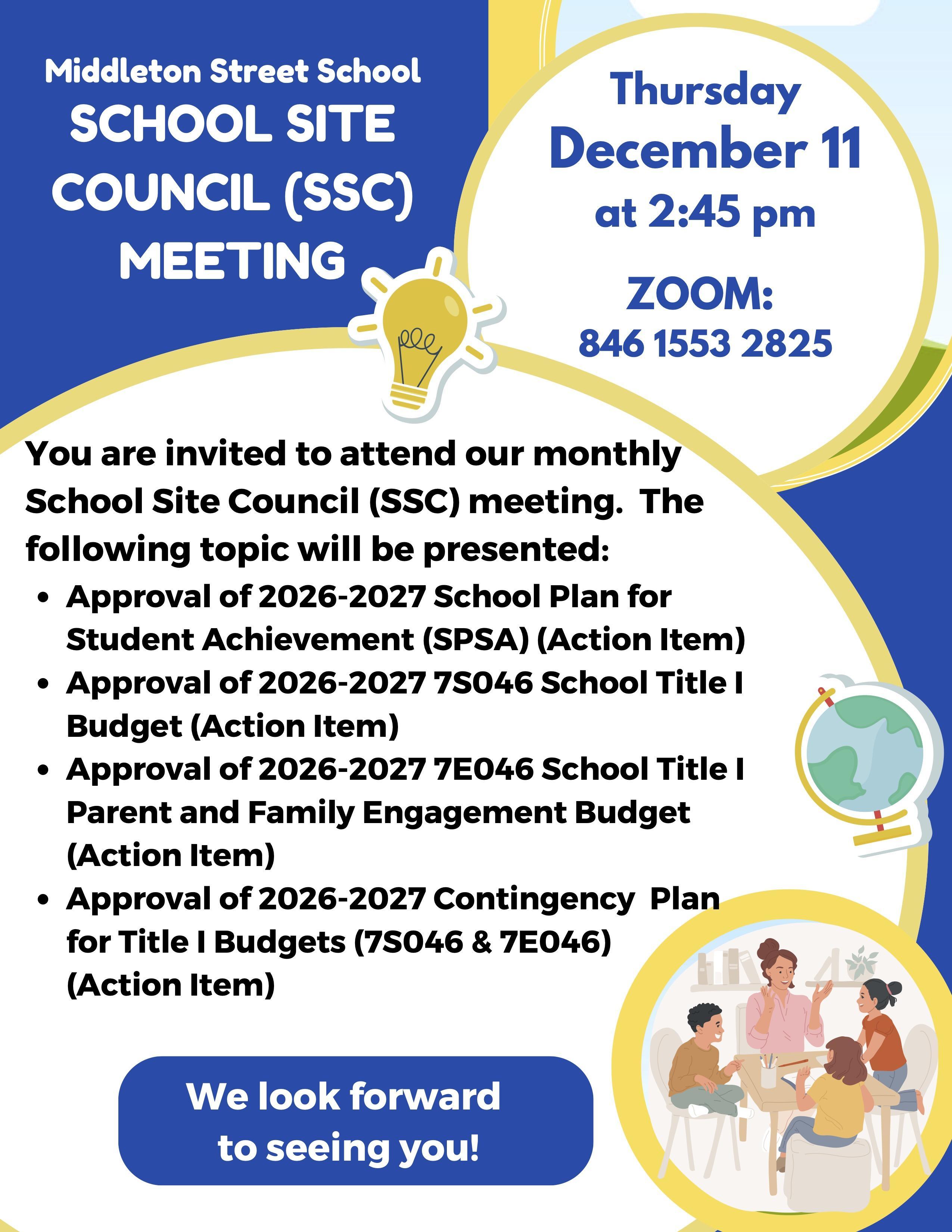 📣 Join us for our SSC Meeting on December 11 at 2:45 PM!